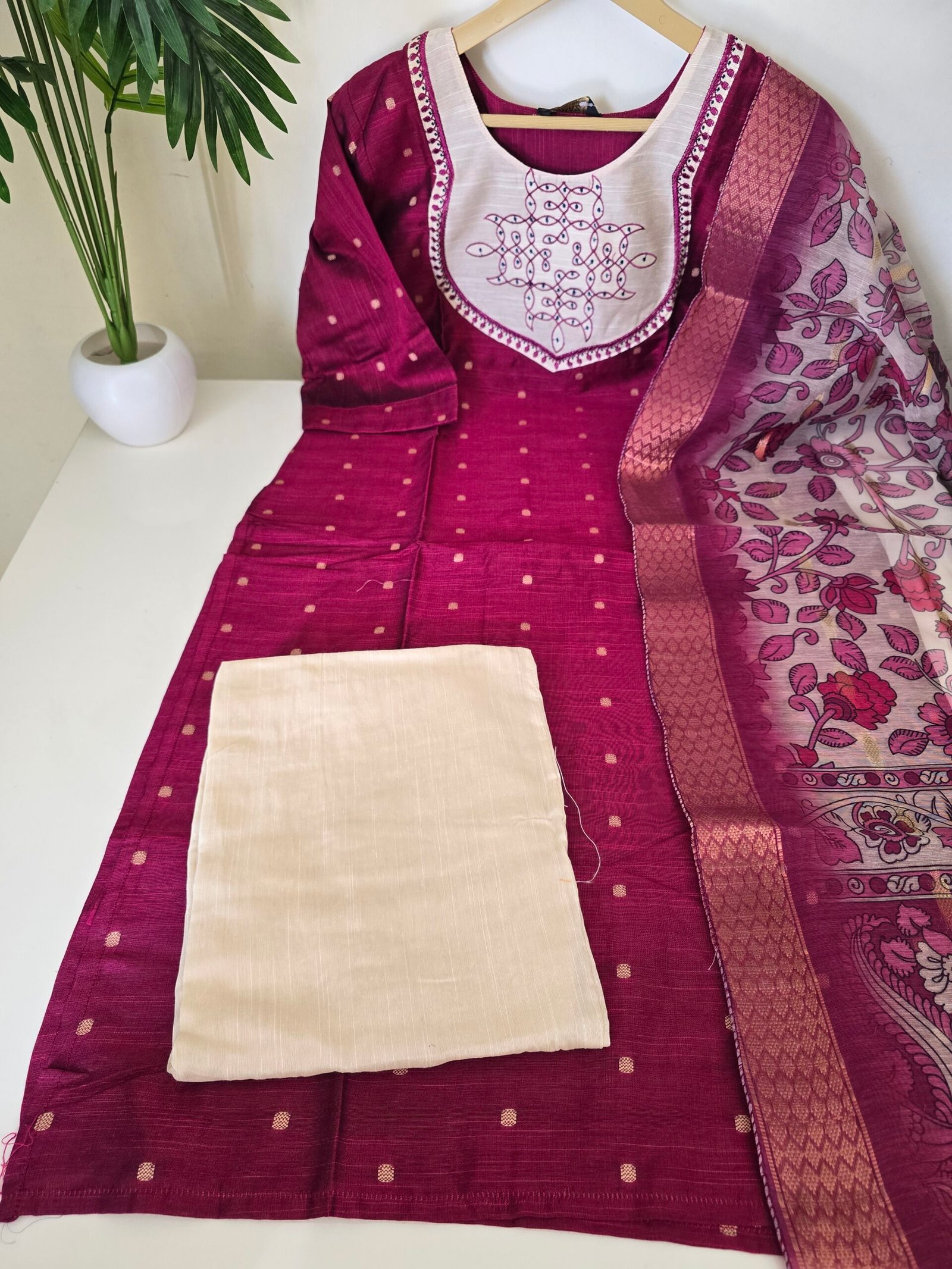 Fabric raw silk kurti pant with duppata