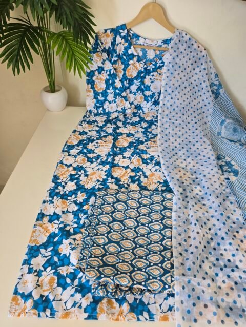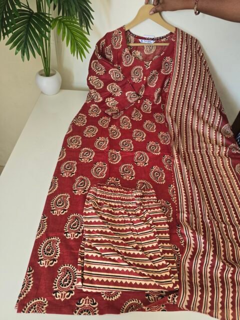 Fabric raw silk kurti pant with duppata