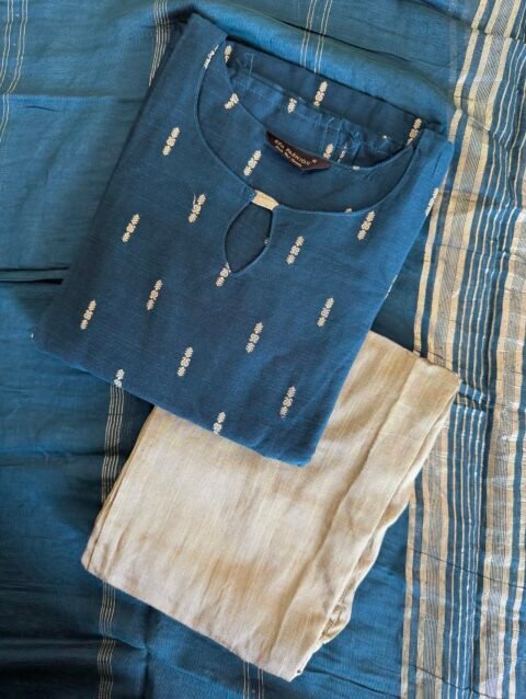 Fabric raw silk kurti pant with duppata